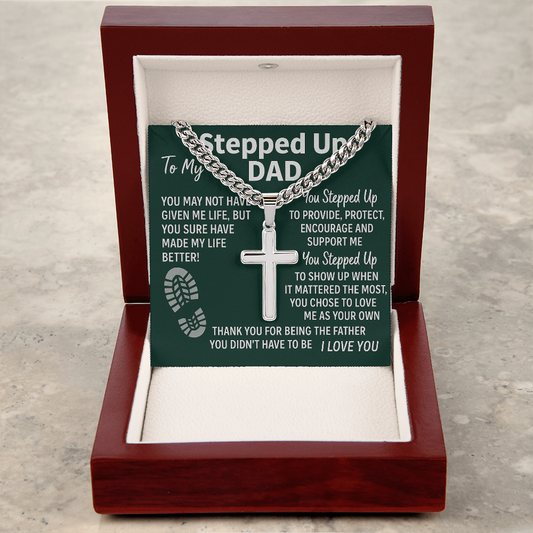 Stepped-Up Dad Cross Necklace | Personalized Father's Day Gift