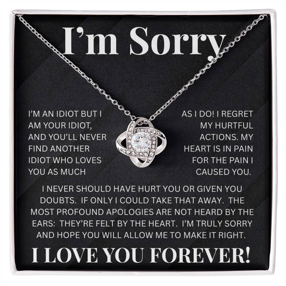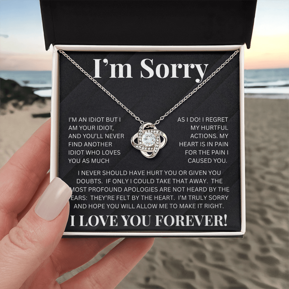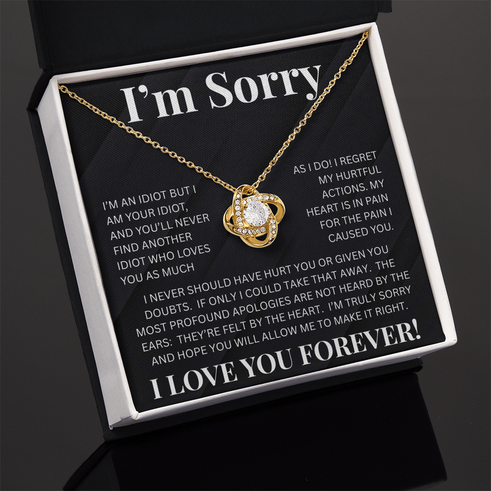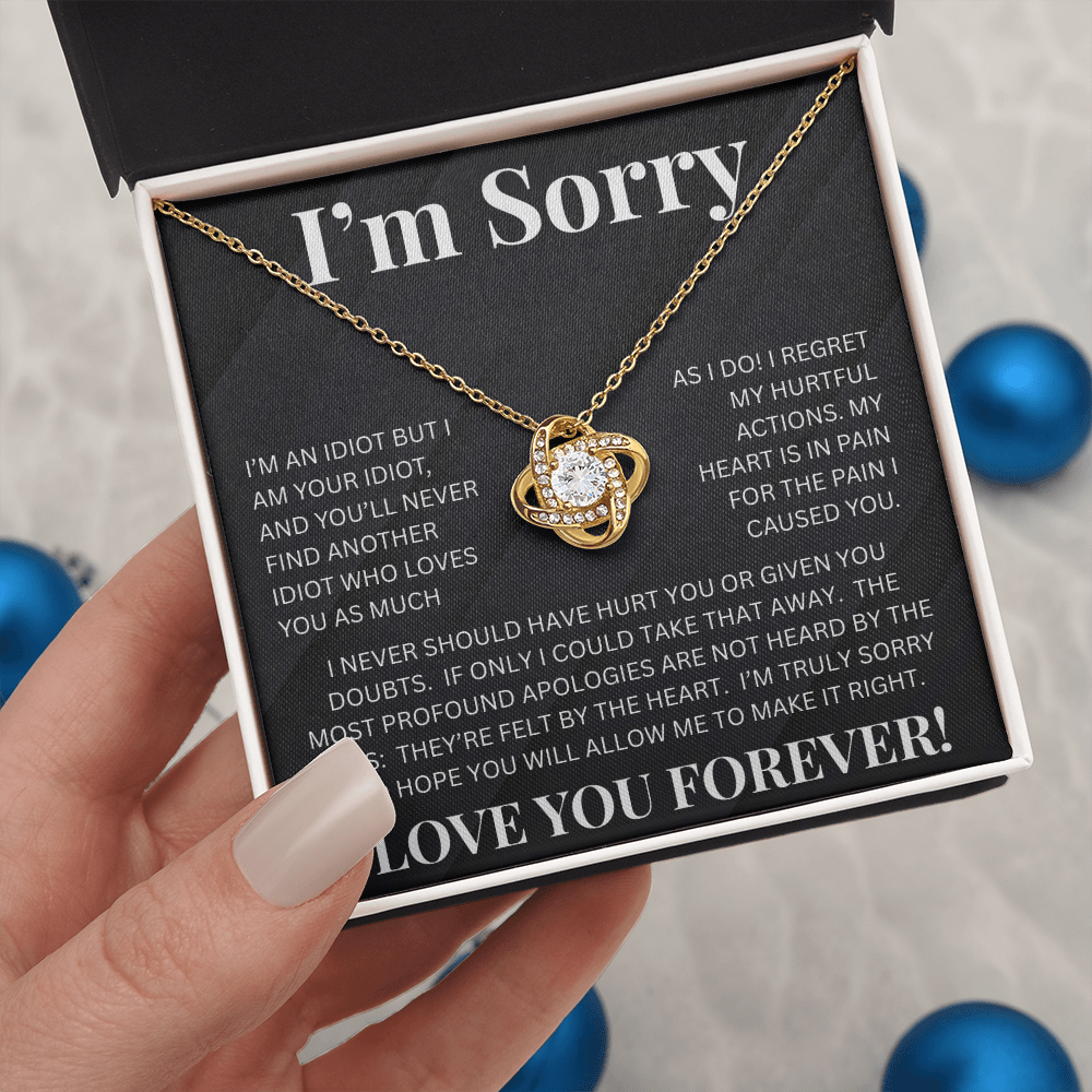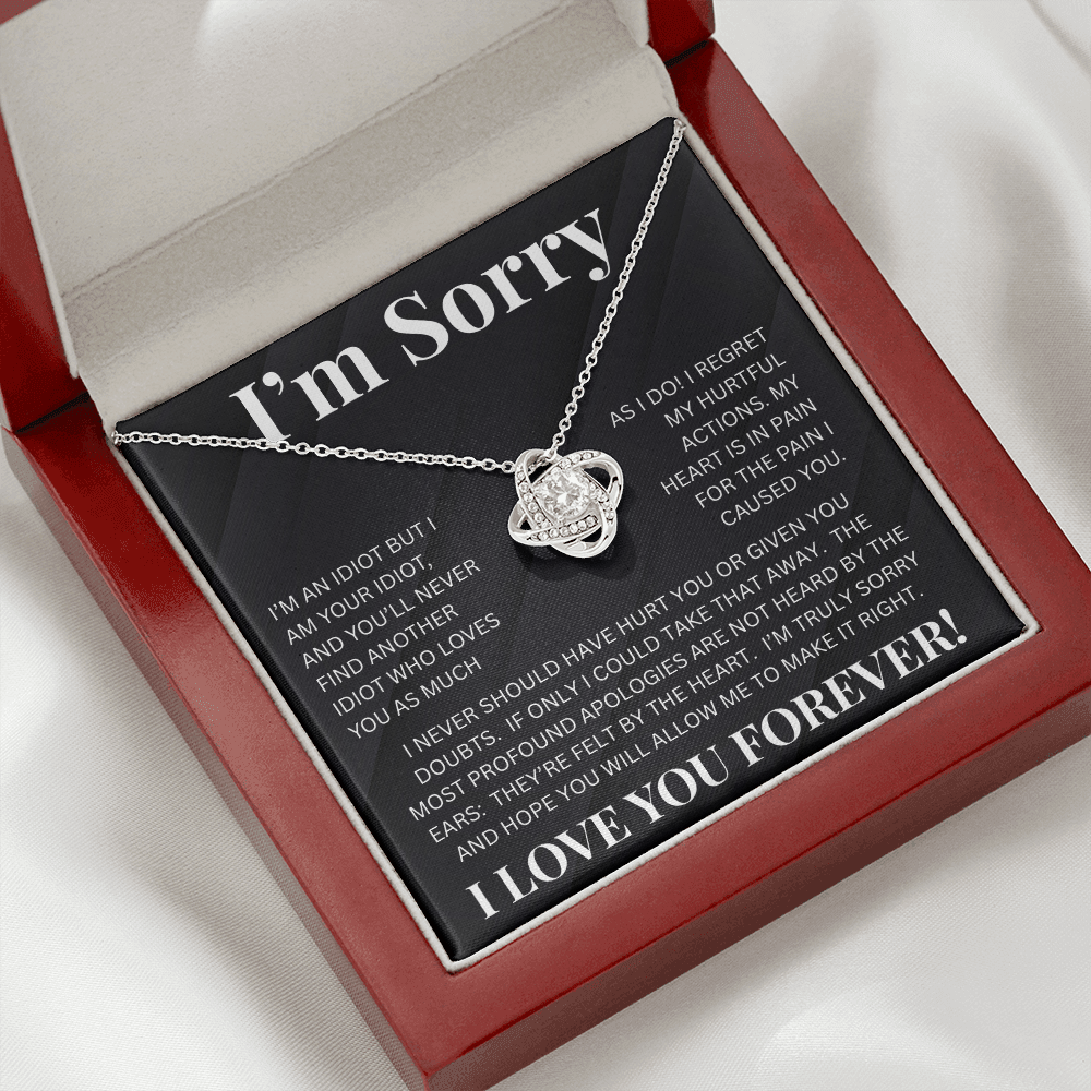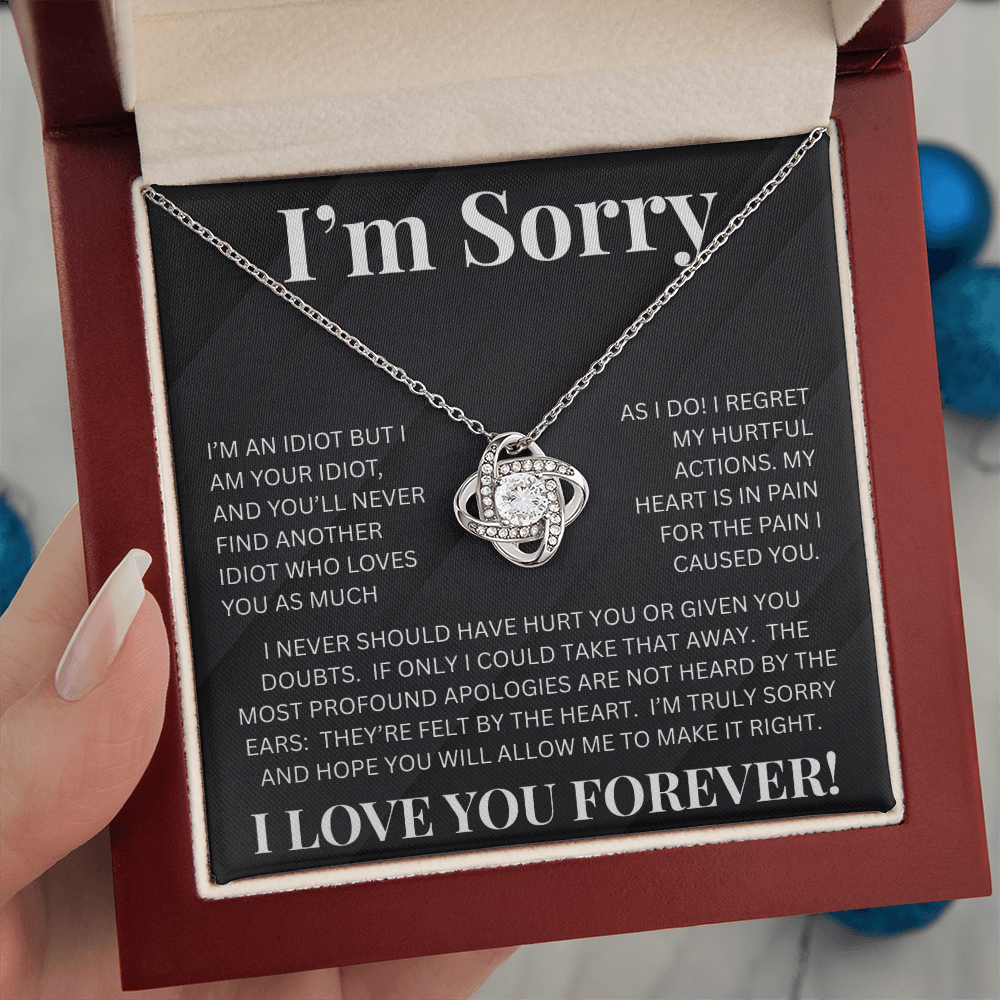 “Imagine her joy as she unwraps this breathtaking Love Knot Necklace. Crafted to represent love without end, it dazzles with premium cubic zirconia stones. A meaningful gift that turns an apology into a memory of love and devotion.”