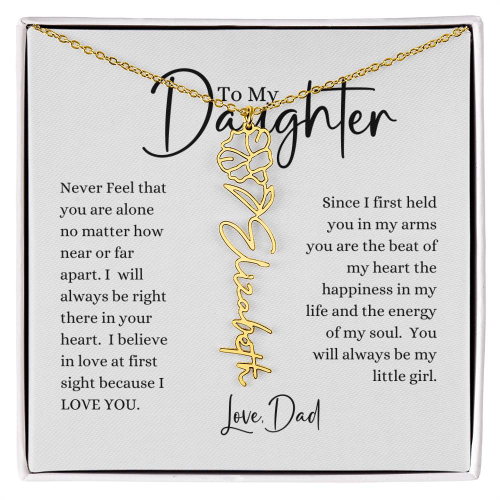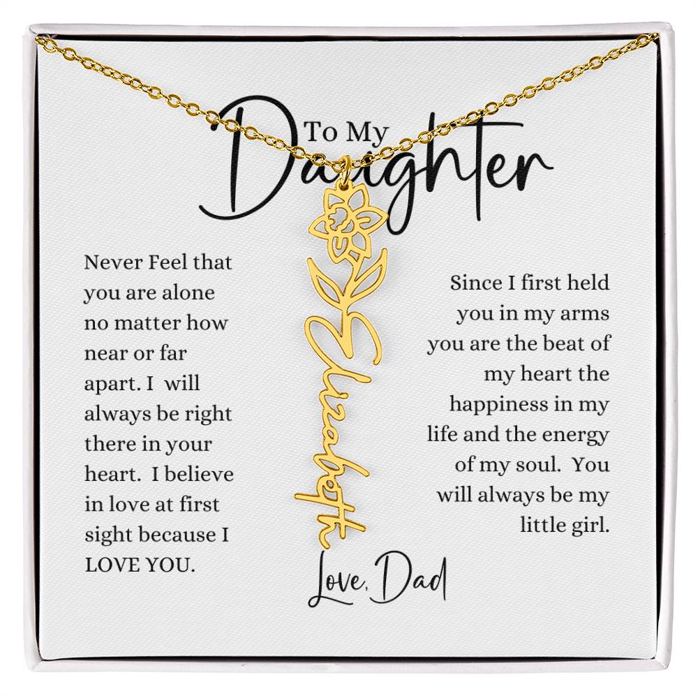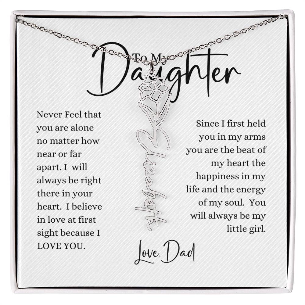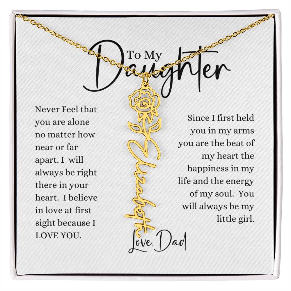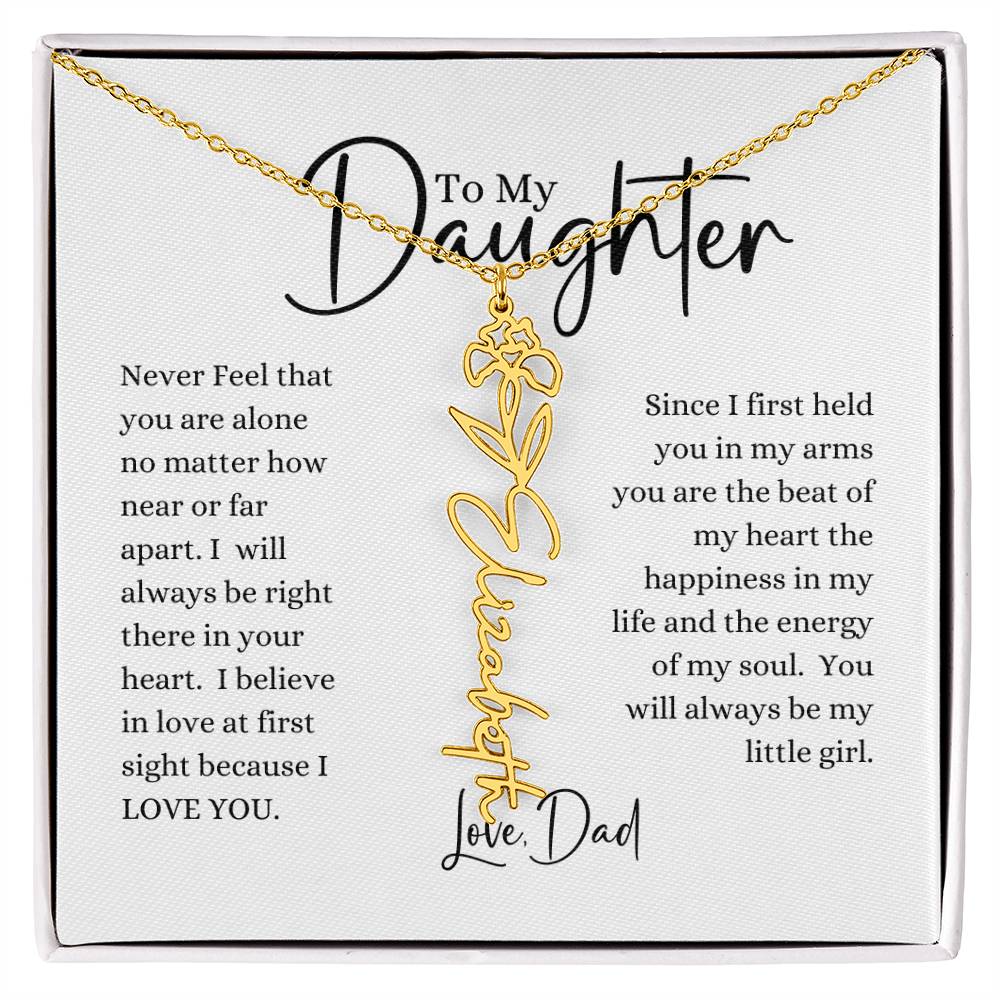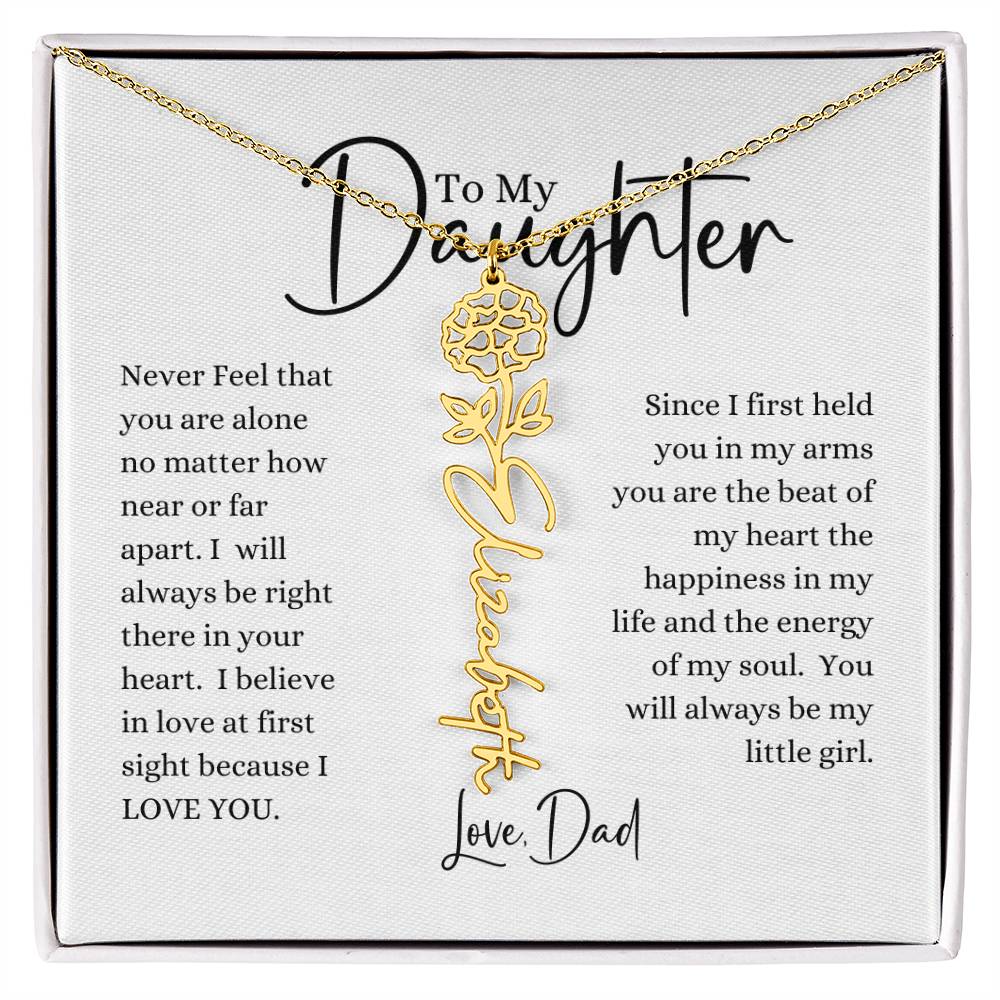 Need a gift that's as unique as she is? Then look no further than our Flower Name Necklace! With a customizable birth flower design, this necklace is a meaningful addition to any jewelry collection. Whether you're dressing up for a special occasion or simply want to add some flair to your everyday look, this necklace is perfect for your special someone. Handcrafted from high-quality materials, it is both stylish and durable. So why wait? Personalize your own floral name necklace today!