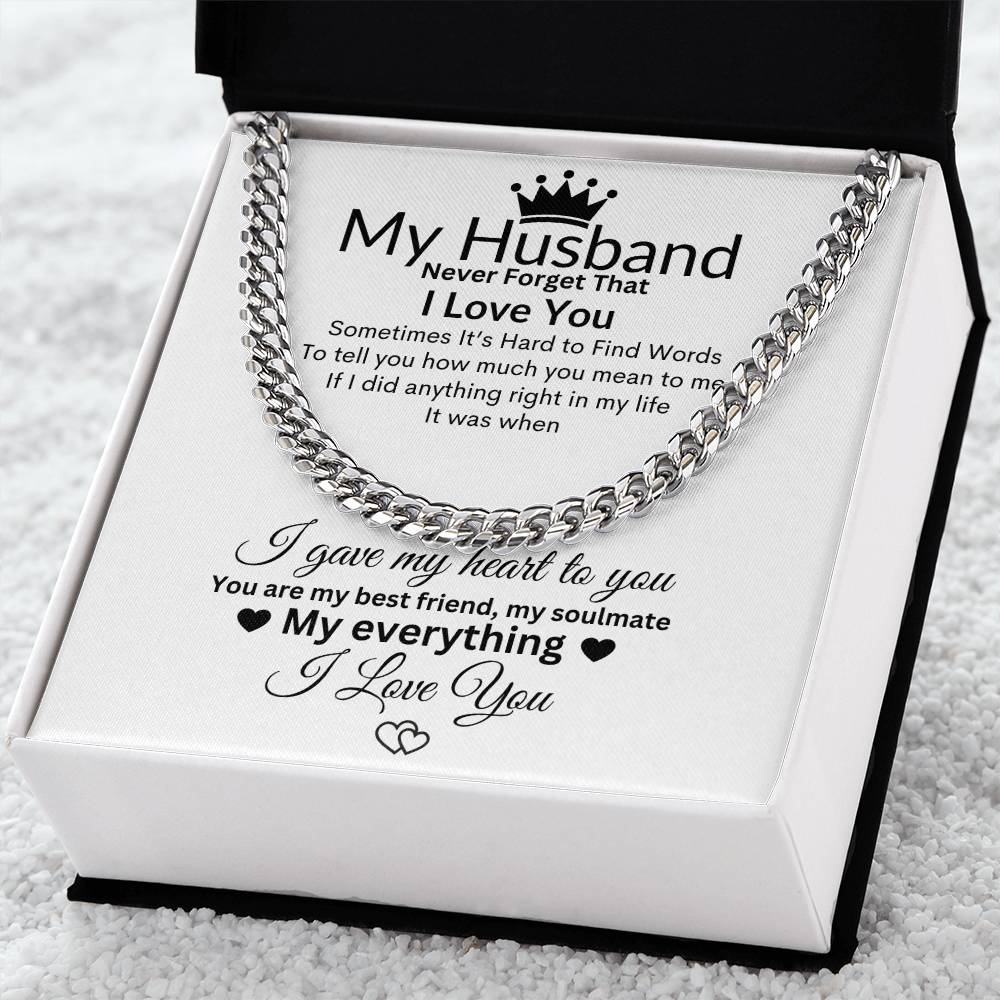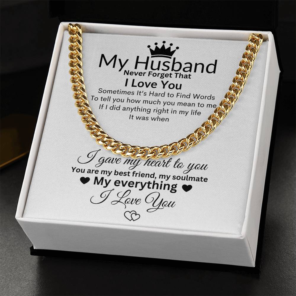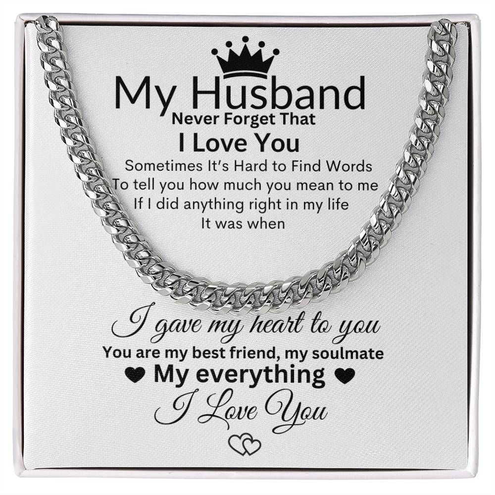MY HUSBAND NEVER FORGET THAT I LOVE YOU. Sometimes it's hard to find words to tell you how much you mean to me if I did anything right in my life it was when I gave my heart to you, you are my best friend, my soulmate, my everything. I Love You